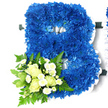 This unique tribute is created using the freshest roses and chrysanthemums that are adding a finishing touch to the elegant display of the blue chrysanthemums. It represents the eternal life of a loved one who will always remain in your heart.